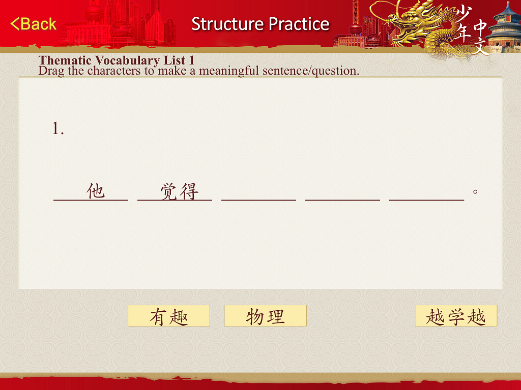 Read the phrases in characters and unscramble characters into one correct sentence by dragging the words above the line.
