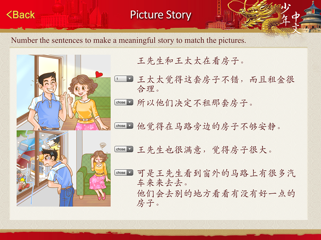 Read the sentence strips and then number them into the right sequence to make the whole story meaningful to match the pictures.